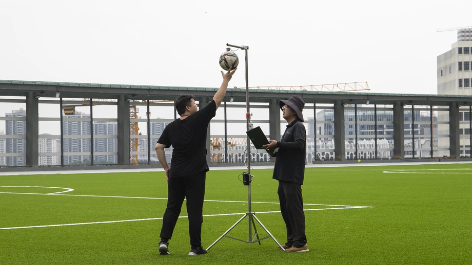 Тестирование характеристик искусственного футбольного поля, включая амортизацию и отскок мяча.